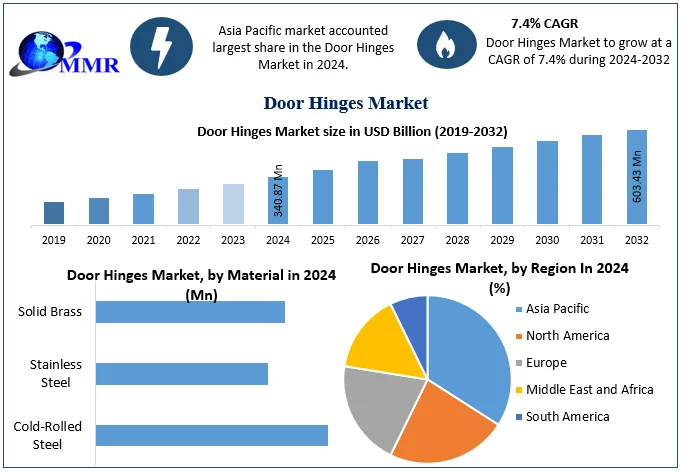The Door Hinges Market is witnessing steady growth driven by increasing construction activities, renovation projects, and rising investments in residential and commercial infrastructure. Hinges serve as essential mechanical components that enable smooth door movement, load distribution, and long-term reliability. Manufacturers are continuously innovating with corrosion-resistant materials, heavy-duty load-bearing designs, concealed hinges, soft-close mechanisms, and smart hinge integration to meet modern building standards and consumer expectations. The growing popularity of modular furniture, customized interiors, and premium architectural fittings is further accelerating product adoption. In addition, sustainability trends are encouraging the use of recyclable metals, eco-friendly coatings, and long-life product designs that reduce maintenance and replacement costs, enhancing overall market attractiveness.